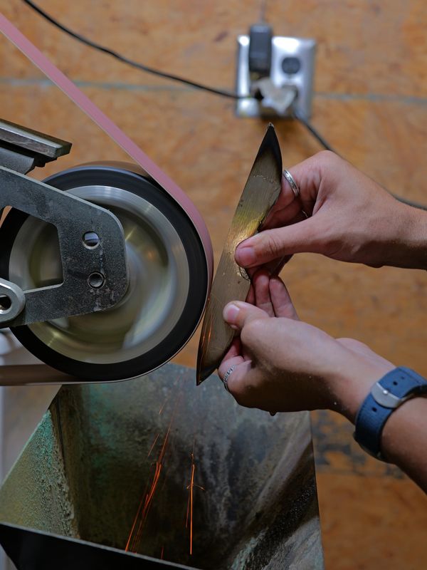 I started my first knife when I was 15 but found I just didn't have the right equipment to do it justice, so like any 15 year old girl I ran to mom and dad who, as objectively the most supportive parents on the planet, bought me my very first grinder.
